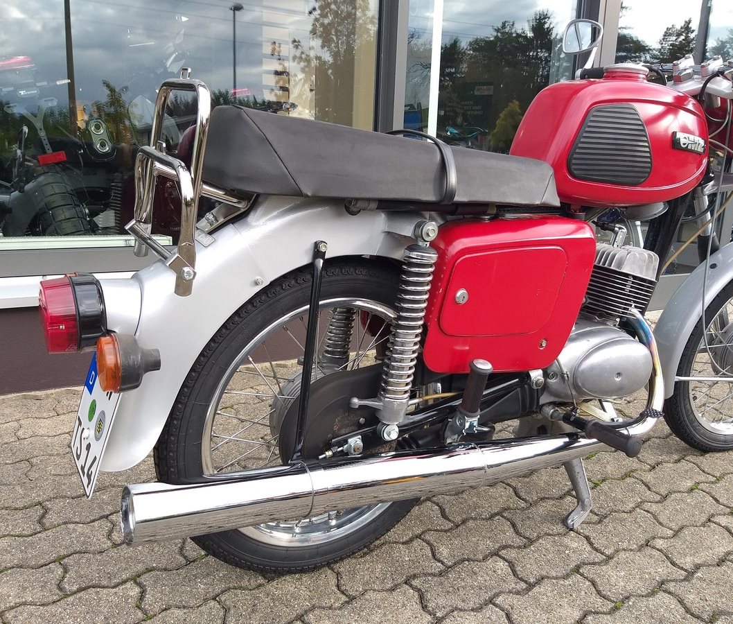 Die TS 150 stand sehr viele Jahre in einem Schaufenster eines alten MZ Händlers, deshalb sind kaum Gebrauchsspuren sichtbar.