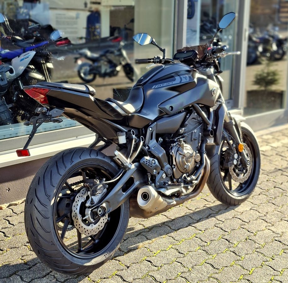 Wir verkaufen eine YAMAHA MT-07 als Gebrauchtfahrzeug in guten Zustand. Zusätzlich zur Serienausstattung wurden LSL-Griffe und Lenker, sowie eine Sportscheibe, ein kurzer Kennzeichenträger und LED-Blinker verbaut.