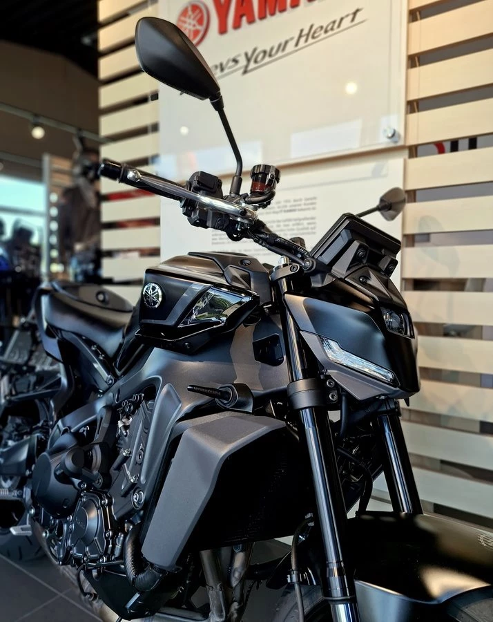 Unser Vorführer die Yamaha MT-09 Y-AMT incl. kurzen Kennzeichenhalter, Mini-LED-Blinkleuchten und Hinterachsprotektor.