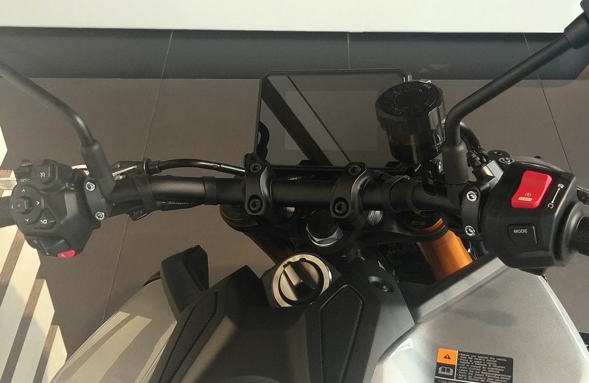 Erlebe das berauschende Drehmoment des 890 cm CP3-Motors wie nie zuvor mit verbesserten, auf die Rennstrecke abgestimmten Fahrermodi, die sich an verschiedene Rundstrecken oder Bedingungen anpassen lassen. Die SP-exklusive DLC-beschichtete, goldfarbene 41 mm KYB Telegabel sorgt zusammen mit dem voll einstellbaren Öhlins-Federbein für das bisher beste Hyper Naked Fahrgefühl.
