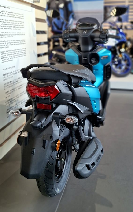 Seine breite Doppelsitzbank sorgt für eine entspannte Fahrt auf jeder Reise - und die Smartphone-Konnektivität ermöglicht es dir, in Kontakt zu bleiben. Der RayZR kann mit der B196-Erweiterung* gefahren werden - und mit Yamahas anerkannter Zuverlässigkeit und einem starken Partnernetz genießt Du unbeschwerten Fahrspaß.